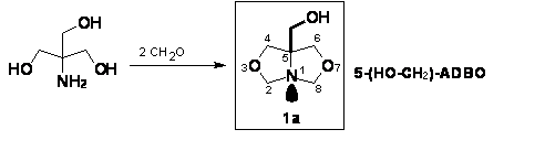 Compusul 1a, abreviat mai de parte ca 5-(HO-CH2)-ADBO (AzaDioxaBicicloOctan) este susceptibil sa dea reactii triviale de O-acilare la functiunea hidroximetilica si de cuaterniazare la atomul de azot N-1, cap de punte.10