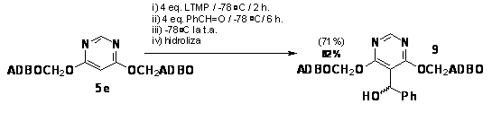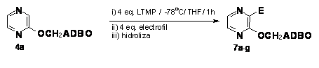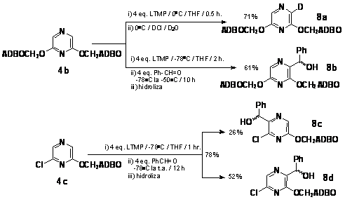 Metalarea sistemelor 5-hetariloximetil-1-aza-3,7-dioxabiciclo[3.3.0]octanice, prezentate ante-rior, este sistematizata in Schema 8. Trebuie precizat ca s-au utilizat electrofili prochirali, in ideea evidentierii insusirilor heterofaciale ale grupei orto-directoare.