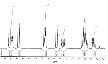 Atribuirile RMN se bazeaza, de asemenea, si pe experimentele 1H-1H-2D-COSY. S-a gasit, astfel, ca semnalul corespunzator protonului H-6' (a fata de azotul piridinic) ramane neafectat, ca dd cu constantele de cuplaj 3J6'-5' 4.9 Hz, 4J6'-4' 1.8 Hz.12 Protonii H-4', -5' manifesta tiparul normal (ddd partial suprapus). Din contra, dubletul atribuit la H-3 (J3'-4' 7.9 Hz) prezinta o diminuare a intensitatii, dupa cum se observa in Tabelul 1.