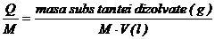 Raportul dintre masa in grame de substanta dizolvata Q intr-un litru de solutie si masa moleculara a substantei dizolvate reprezinta molaritatea solutiei sau concentratia molara :