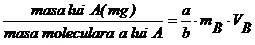 Daca A este substanta analizata, iar B este titrantul sau reactantul de concentratie molara cunoscuta mB, atunci:
