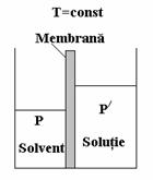 Daca contactul dintre solvent si solutie se realizeaza prin intermediul unei membrane semipermeabile (membrana animala, membrana semipermeabila de hexacianoferat II de cupru, celula cu manometru de Hg), care permite trecerea numai a moleculelor solventului, nu si ale substantei dizolvate, īntre cele doua compartimente tendinta de egalizare a potentialelor chimice se manifesta numai prin difuzia moleculelor solventului spre solutie, determinānd diluarea acesteia.