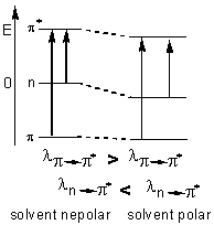 Tranzitiile electronice in domeniul UV-Viz constau in excitarea unui electron de valenta situat intr-un orbital molecular (OM) de legatura σ sau π, sau intr-un orbital de nelegatura n, spre un OM de antilegatura σ* sau π*.