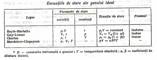 Ecuatia generala de stare a gazelor ideale: pV=nRT valabila pentru n moli din orice gaz se verifica numai īntre limitele de temperaturi la care moleculele nu īncep sa se disocieze īn atomi (ca limita superioara) si la care fortele de coeziune sunt īnca neglijabile (ca limita inferioara).