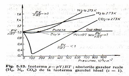 Urmarind izotermele p-pV/RT, respectiv p-z rezulta ca la presiuni mici z<1, gazele reale sunt mai compresibile decāt o cere ecuatia generala prin izoterma gazului ideal, iar la presiuni mari z>1, gazele devin mai putin compresibile decāt gazul ideal. Exceptie fac H2 si He care atāt la presiuni mici cāt si la presiuni mari sunt mai putin compresibile decāt gazul ideal.
