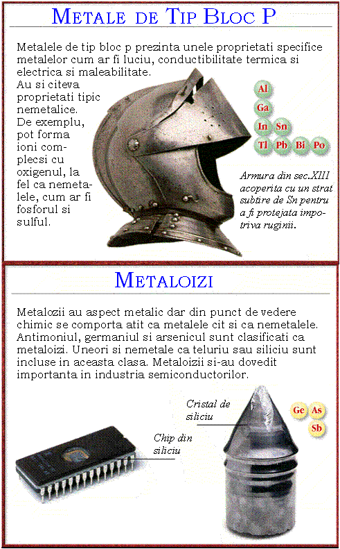 din grupele 13-18 din tabelul periodic. Blocul include un amestec de metale de tip bloc p