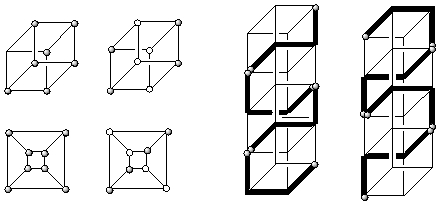 Figura 12. Formarea cubului din protohelixuri cu aceasi chiralitate sau chiralitate in opozitie (diagrama Schlegel)