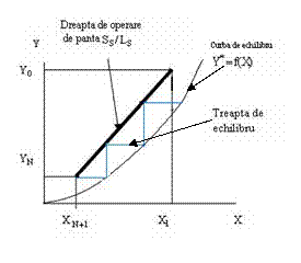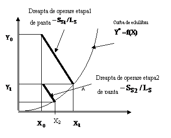 Figura 2.6 Prezentarea schimbului ionic cu contact in trepte in diagreama Y vs X