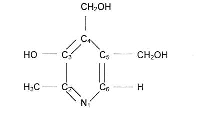 Piridoxina este un derivat de piridina,cu formula empirica C8H11O3N ( 3-hidroxi, 4,5-dihidroximetil-2-metilpiridina). Are urmatoarea formula dezvoltata: