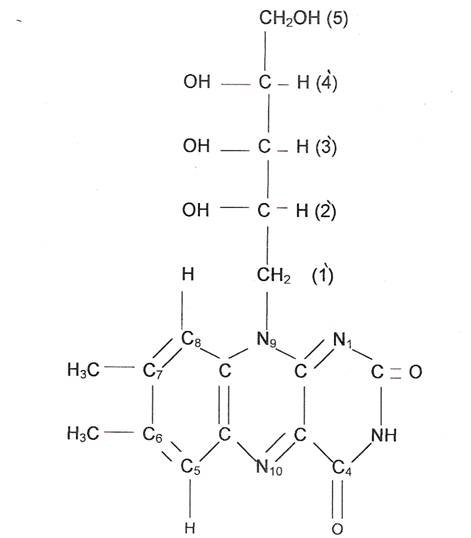 Riboflavina este un compus polinuclear heterociclic, avand in constitutie un glucid ( riboza ) si un nucleu de aloxazina.