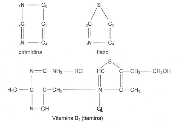 Vitamina B1 este un compus format din doua nuclee: unul de pirimidina si unul de tiazol.