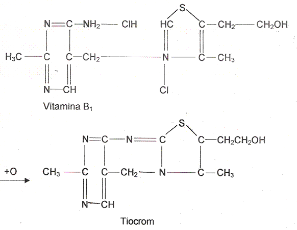 Vitamina B1 ,ca si cocarboxilaza, nu este oxidata de aerul atmosferic, dar ele sunt usor oxidate de fericianura de potasiu,care le transforma in tiocrom,substanta ce prezinta o puternica fluorescenta albastra si ultraviolet si care serveste de altfel la dozarea vitaminei.