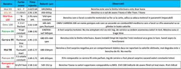 la masuratorile oferite pe scanner, benzinele cu performate mici si consum