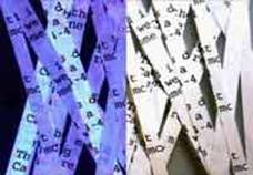 In figura 47 avem mai multe bucati de hartie despre care nu se cunoaste cu certitudine daca provin din acelasi act. In lumina naturala a soarelui (fig 47b) nu apare nici o diferenta intre textura bucatilor de hartie. Atunci cand sunt expuse la lumina ultravioleta (fig 47a) ele au o coloristica distincta si apare clar faptul ca bucatile de hartie nu au aceeasi sursa.