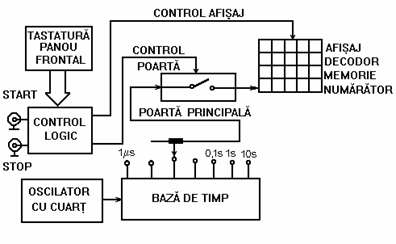 Intervalul de timp tx poate fi obtinut prin comenzi manuale de pe panoul frontal de START-STOP sau cu fronturile unor semnale electrice provenite din schema in care se masoara.