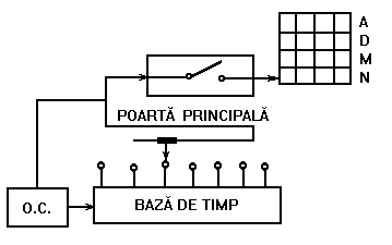 Oscilatorul cu cuart si baza de timp. Pentru masurarile de timp si frecventa este necesara o referinta de timp de mare stabilitate si precizie ce va fi divizata pentru a obtine timpi diferiti de deschidere a portii principale.