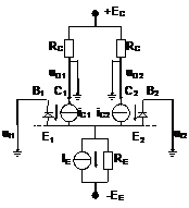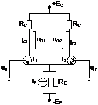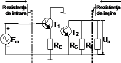 In figura 1 este prezentata schema de principiu a unui etaj compus CC-EC. Impedanta (rezistenta) de intrare in regim cvasistatic de semnal mic este aproximativ |