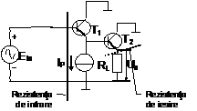 In figura 4 este prezentata schema de principiu a unui etaj compus EC-BC. Impedanta (rezistenta) de intrare in regim cvasistatic de semnal mic este aproximativ: |