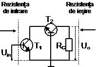 In figura 2 este prezentata schema de principiu a unui etaj compus CC-CC. Impedanta (rezistenta) de iesire in regim cvasistatic de semnal mic este aproximativ: |