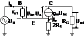 In figura 4 este prezentata schema de principiu a unui etaj compus EC-BC. Impedanta (rezistenta) de iesire in regim cvasistatic de semnal mic este aproximativ: |