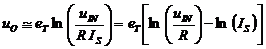 Figura 6 prezinta schema unui circuit de logaritmare. Tensiunea de iesire are expresia: |