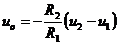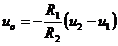 Figura 8 prezinta schema unui amplificator inversor. Tensiunea de iesire are expresia: |