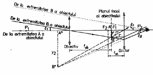 Luneta este destinata observarii obiectelor foarte īndepartate. De la oricare punct al unui astfel de obicei ajung la noi fascicule practic paralele. Sa consideram un obiect astronomic AB si sa īndreptam luneta cu axa optica spre extremitatea A: