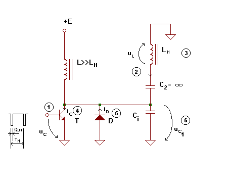 Problema 1. Pentru schema electronica simplificata a etajului final din baleiajul orizontal, prezentata n figura, se cunosc: energia necesara deflexiei WmH = 1.81 mJ, inductanta bobinelor de deflexie LH = 3mH si durata cursei inverse tIH = 10,88µs. Neglijând rezistenta de pierderi din circuit, sa se determine: