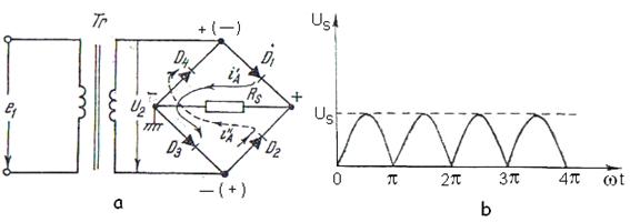 a- schema electrica ; b- forma de unda a tensiuni redresate.