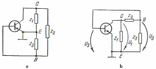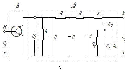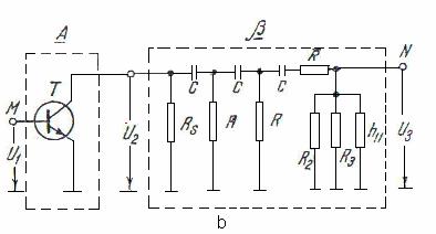 a -schema electrica, b -structura amplificator-cuadripol de reactie.