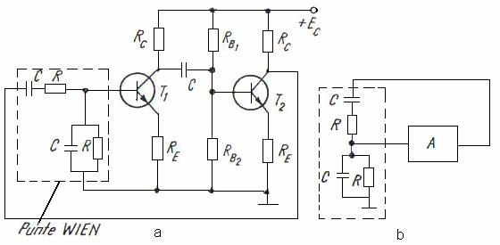 a -schema electrica, b structura amplificator-cuadripol de reactie.