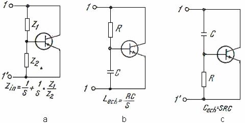 a -schema principala, b -reactanta inductiva, c -reactanta capacitiva.