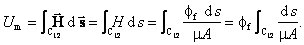 tensiunea magnetica de-a lungul liniei de câmp C medii (linia axa),