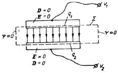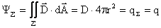 între care există un mediu de permitivitate e. Fie q sarcina armăturii interioare. Se consideră o suprafață S, ce reprezintă un
