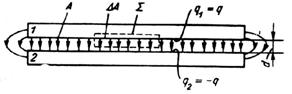 - se presupune condensatorul încărcat cu sarcinile q și -q