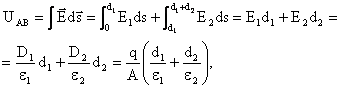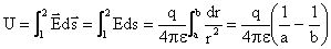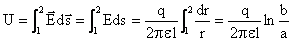 iar tensiunea între cele două armături, calculată în lungul unei linii de câmp este: