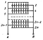 Este o combinație de conexiuni serie și derivație. Capacitatea ei echivalentă se determină din aproape în aproape prin calculul capacităților serie și derivație ce-o compun.