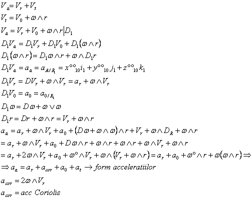 R=oxyz; ma=F(t,r,v); R'=o'x'y'z'; aa=ar+at +acor