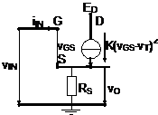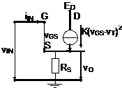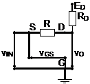 Stiind ca tranzistorul din circuitul din figura 1 lucreaza in regim de rezistenta comandata, determinati schema echivalenta corespunzatoare: |