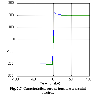 In relatia (2.72), UA si IA reprezinta tensiunea si curentul arcului electric, Ust este tensiunea de stingere spre care tinde tensiunea odata cu cresterea curentului. Constantele C si D determina diferenta intre partile caracteristicii in care creste respectiv descreste curentul (Ca si Da, respectiv Cb si Db).