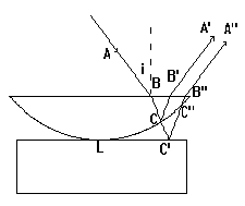 Se considera un dispozitiv alcatuit dintr-o lama de sticla cu fete plan-paralele pe care este asezata o lentila plan-convexa (fig. 1) Fata convexa, in contact cu lama de sticla, are raza de curbura foarte mare (de ordinul metrilor). Intre lentila si suport se realizeaza astfel o pana de aer cu simetrie cilindrica in raport cu perpendiculara ridicata in punctul de contact la planul lamei, panta acestei pene de aer fiind continuu crescatoare incepand din vecinatatea punctului de contact L pana la cercul de intersectie dintre fata sferica si fata plana a lentilei.