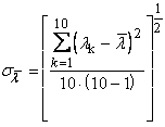 unde k = 1,2,310 iar media si dispersia valorilor obtinute pentru lungimea de unda se calculeaza cu formulele: