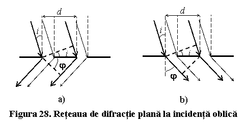 La incidenta oblica (fasciculul incident nu este paralel cu normala la planul retelei), din fig.28 se observa ca pot aparea doua cazuri: