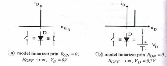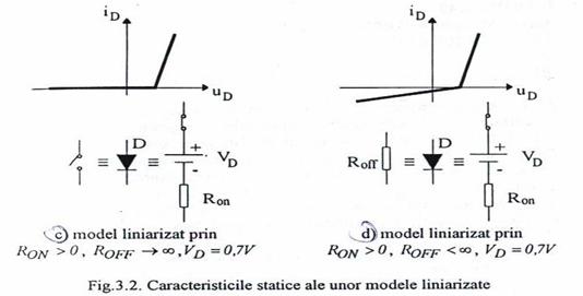 Datorita neliniaritatii caracteristicii statice a diodei exprimate prin relatia (3.1), in multe aplicatii practice dioda este inlocuita cu diverse modele liniarizatecare simplifica mult analiza circuitului, fara a induce erori substantiale.