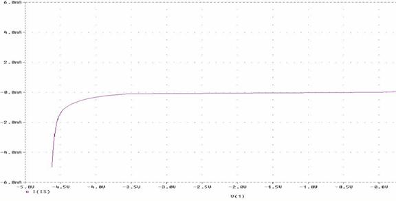 ANALIZA PSPICE Caracteristica diodei Zener 1N750 IS 0 1 DZ 1 0 D1N750 .LIB "DC3EVAL.LIB" .DC IS -5mA 5mA 0.1mA .PLOT DC V(1) .PROBE .END |