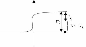 b) In cazul in care jonctiunea este polarizata invers (sursa exterioara E are sens opus), campul exterior E este de acelasi sens cu cel imprimat, Ei. Bariera de potential creste la valoarea U0 +UA. Numarul purtatorilor majoritari care o pot strabate scade, in schimb vor trece purtatori minoritari. Apare un curent rezidual. Daca tensiunea inversa creste mult, curentul invers (rezidual) creste si duce la strapungerea jonctiunii. Tensiunea la care se produce acest fenomen se numeste tensiune de strapungere, US.
