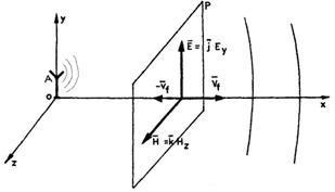 Pentru studiul propagarii câmpului se alege o directie privilegiata, fie aceasta Ox si un plan perpendicular pe aceasta directie P, la o distanta suficient de mare de sursa de emisie (o antena de emisie), într-un mediu omogen, izotrop si imobil(aer/spatiu liber) .