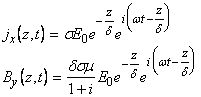 Admitem o variatie periodica cu timpul a campului electric, a densitatii de curent si a campului magnetic, de forma: