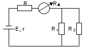 Īn circuitul din figura alaturata R1 = 4 W, R2 = 6 W R = 5 W rezistenta ampermetrului RA = 2 W, iar sursa are tensiunea electromotoare E = 10 V si rezistenta interna r. Ampermetrul indica un curent de intensitate I=1A. Determinati: