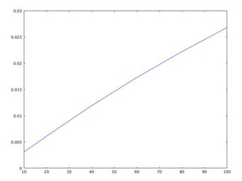 Se analizeaza caracteristica de mers in gol pentru gradientii termici(diferenta de temperatura intre peretii verticali, "borne termice") TH-TC = 273+10, 20, 40, 60, 80, 100º si se traseaza graficul. Pentru regimul de mers in gol valoarea potentialului electric la borna 2 este 0. In tabelul de mai jos avem valorile pentru potentialul electric si pentru curentul electric.